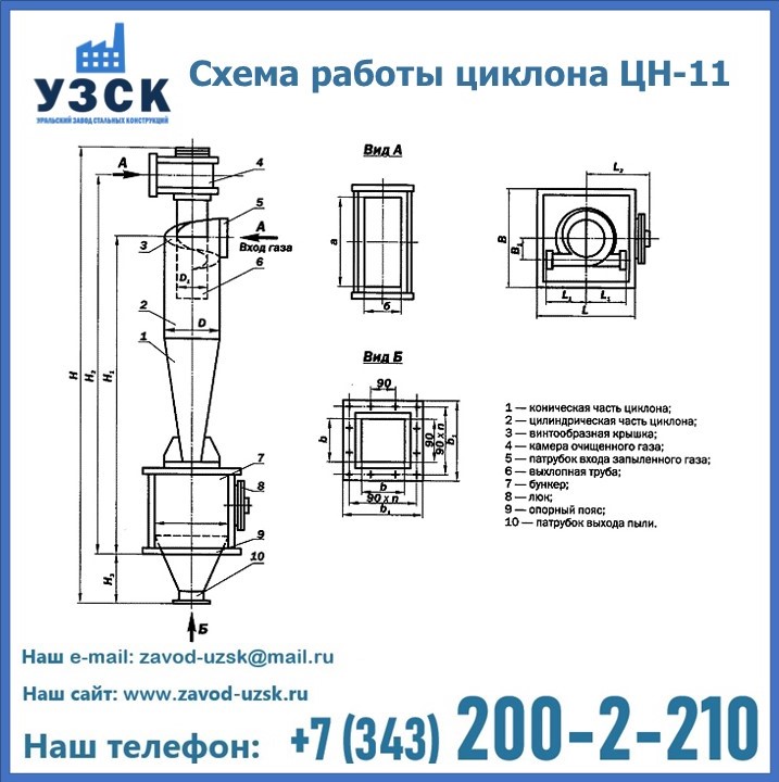 При этом ощутимой разницы в цене между универсальным и узконаправленным, подобранным в соответствии с конкретными техническими требованиями циклоном, нет. Стоимость воздухоочистительного оборудования типа циклон обусловлена маркой и толщиной стали, из которого он изготовлен, сложностью и специфичностью конструкции, наличием дополнительного оснащения (бункер, улитка и другие). При необходимости, на заводе УЗСК в Йошкар-Оле будет изготовлен циклон по индивидуальным техническим чертежам заказчика.