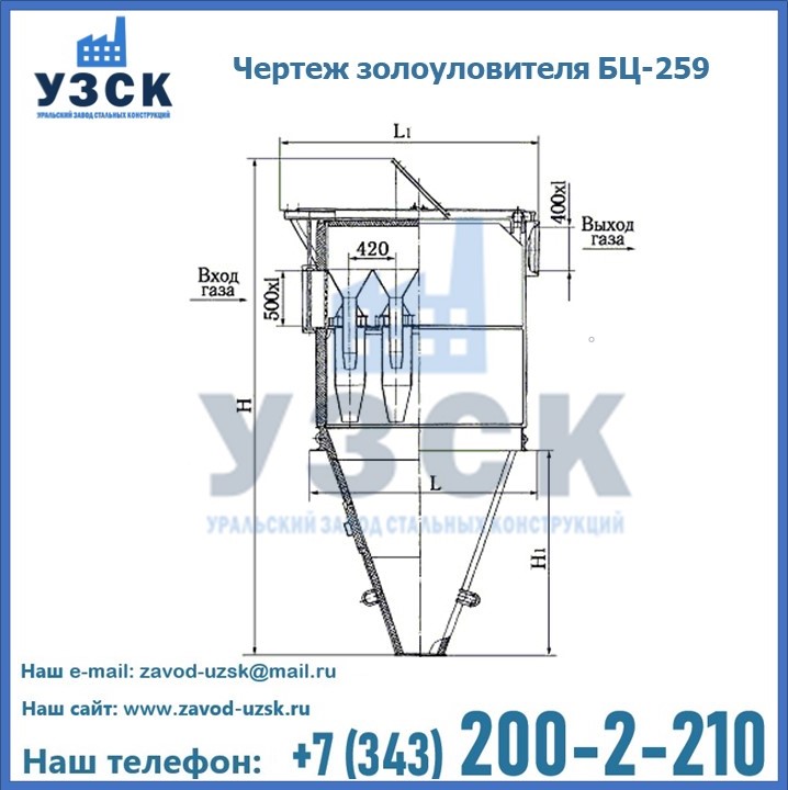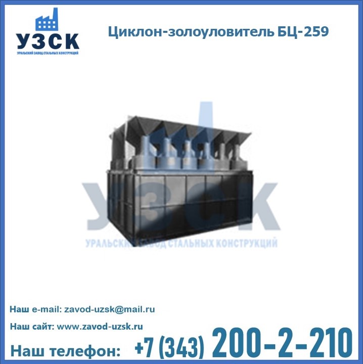 Если вы планируете купить то или иное оборудование, например, циклоны-золоуловители БЦ-259, то рекомендуем заказать данный товар на сайте УЗСК. Мы производим и реализуем продукцию высокого качества по приемлемой цене. Эксперты Уральского Завода Стальных Конструкций в Йошкар-Оле проконсультируют вас по всем вопросам, помогут сделать выбор и оформить заказ без лишних временных затрат. Мы гарантируем соответствие нашей продукции всем требованиям ГОСТ и ТУ, а также износостойкость и высокую производительность предлагаемого оборудования. Если требуется изготовить циклон нестандартных размеров, то такой вариант выполнения заказа тоже предусмотрен, так как предприятие имеет собственные производственные площади и надежных поставщиков. На все поставляемое или производимое оборудование имеются чертежи и прочая техническая документация. Заказать и купить циклоны или прочее оборудование высокого качества и по доступной цене можно через наш сайт или по указанному в разделе «Контакты» телефону.