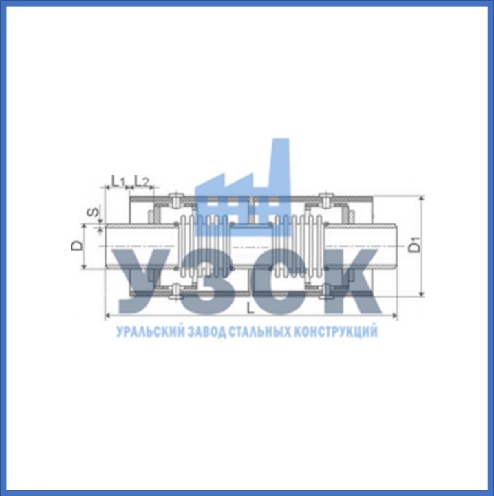 | Условное обозначение | Ду, мм | D, мм | D1, мм | S, мм | L, мм | L1, мм | L2, мм | Осевой ход, ±λ мм | Жесткость, Сλ, H/мм | Масса, G кг |